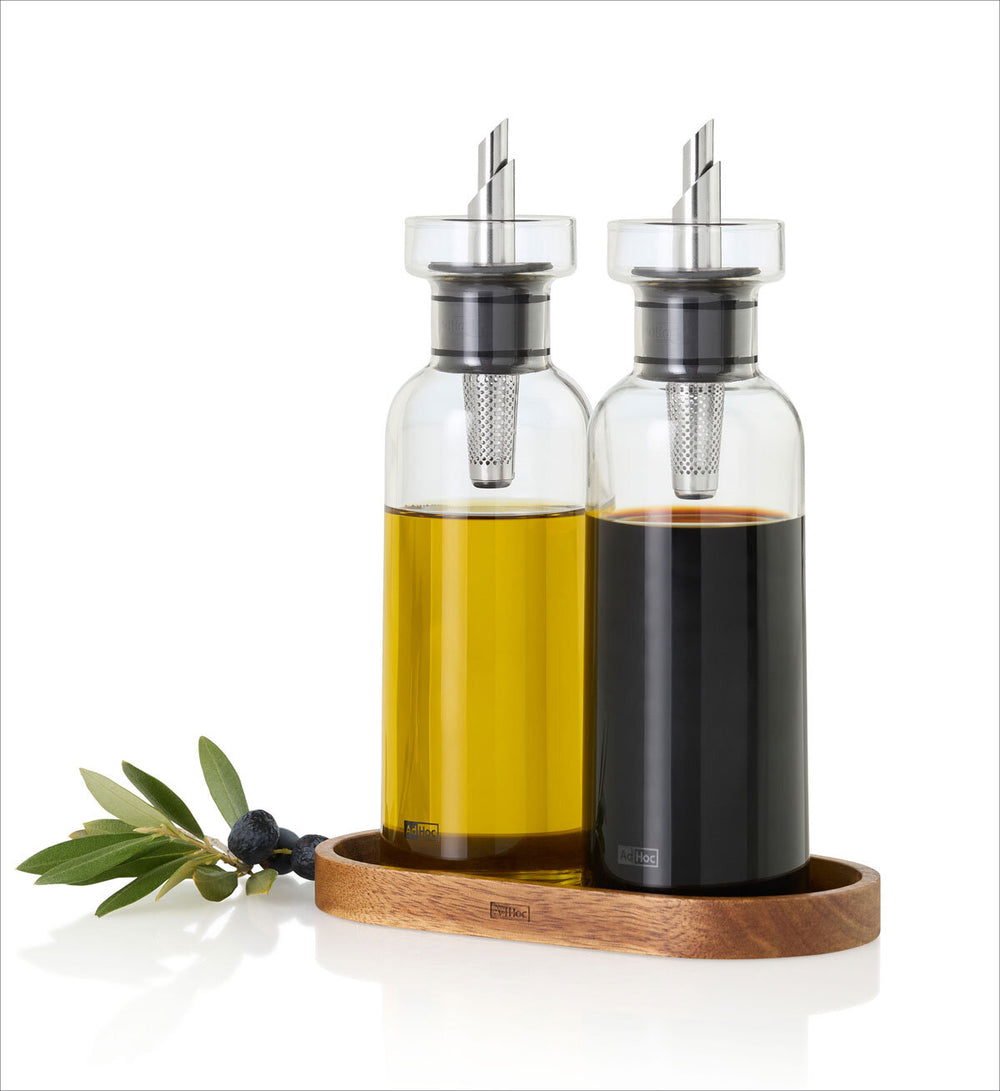 Am Salat fehlt ein wenig Würze? Gut, wenn dann der Öl-/Essigspender „AromaPour“ zur Hand ist. Bei Tisch oder in der Küche liefert dieses hochwertige neue Produkt von AdHoc feinstes Olivenöl, geschmackvolles Kürbiskernöl, edlen Essig und vieles andere mehr ganz nach Wunsch. Einfach anheben, ausgießen und abstellen, und das mit nur einer Hand: Dieser Spender ist wirklich praktisch in der Anwendung!