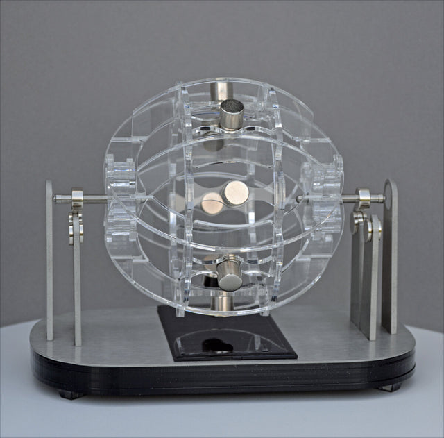 Ein besonderes Highlight ist die schwebende Achse, die durch Magnetkraft gehalten wird. Diese Ingenieurskunst aus Deutschland bietet eine erstaunliche Laufruhe und Präzision. Der Bausatz aus robustem Edelstahl und einem Rhombenkuboktaeder aus lupenreinem Acrylglas besticht durch seine beeindruckende Optik und bietet stundenlangen Bastelspaß.