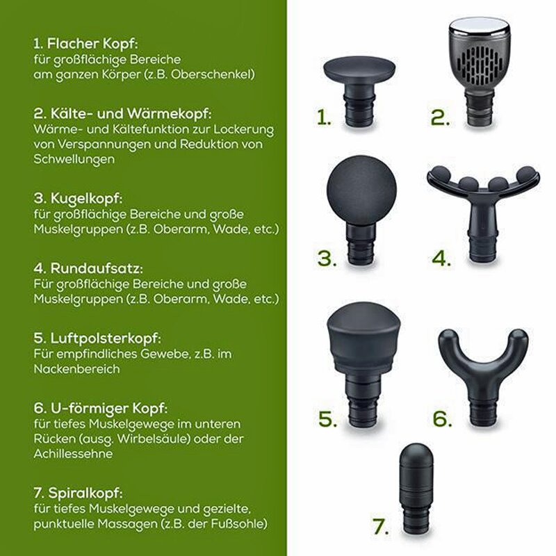 7 Massageaufsätze – individuell anpassbar