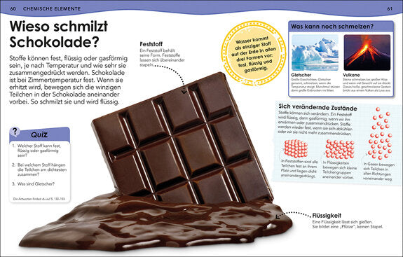 Interaktive Mitmach-Elemente wie Quizkästen, spannende Rätsel und Wahr-oder-Falsch-Spiele sorgen für Spaß und motivieren zum Weiterforschen. Wissenskästen bieten noch mehr spannende Infos für kleine Entdecker.