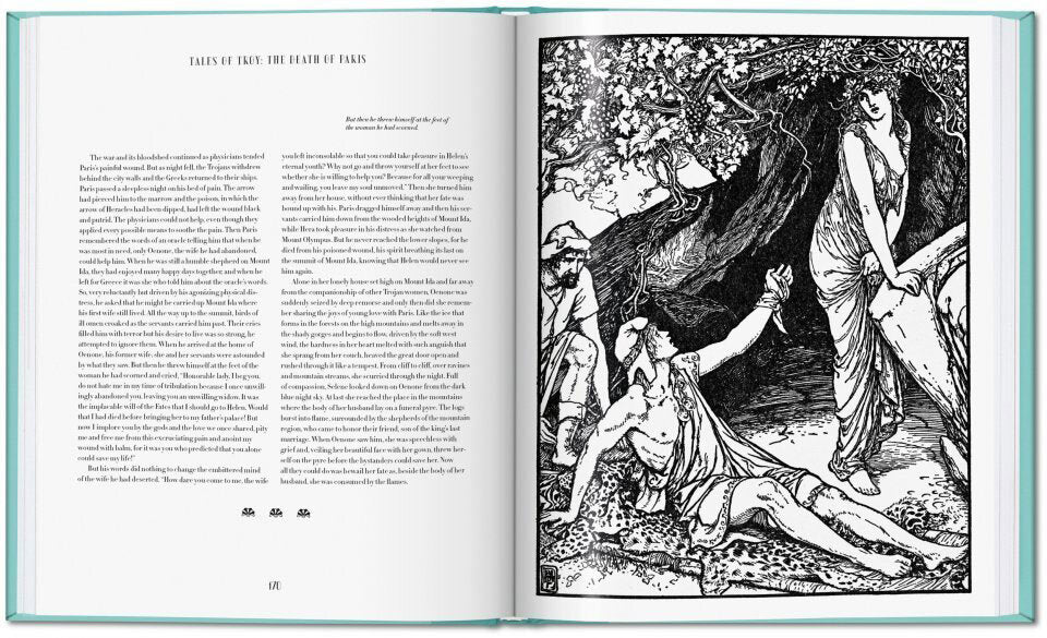 Die Sagen, ausgewählt aus Gustav Schwabs berühmtem Klassiker, spiegeln die großen Themen des Lebens wider: Mut, Ehrgeiz, Loyalität und Rache. Über 100 kunstvolle Illustrationen zahlreicher Meister wie Walter Crane und Arthur Rackham hauchen den Göttern, Helden und Ungeheuern neues Leben ein. Die klar erzählten Mythen faszinieren Jung und Alt und laden dazu ein, in die Welt von Zeus, Odysseus und Medea einzutauchen.