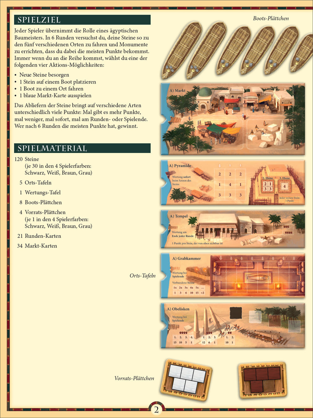 Jeder Zug erfordert eine strategische Entscheidung: Besorgen Sie neue Steine, beladen Sie ein Boot, fahren Sie ein Boot zu einem Ort, oder nutzen Sie eine 1x-Aktion-Marktkarte? Jede Entscheidung kann über den Sieg entscheiden, denn sie beeinflusst direkt, wie viele Punkte Sie sammeln.