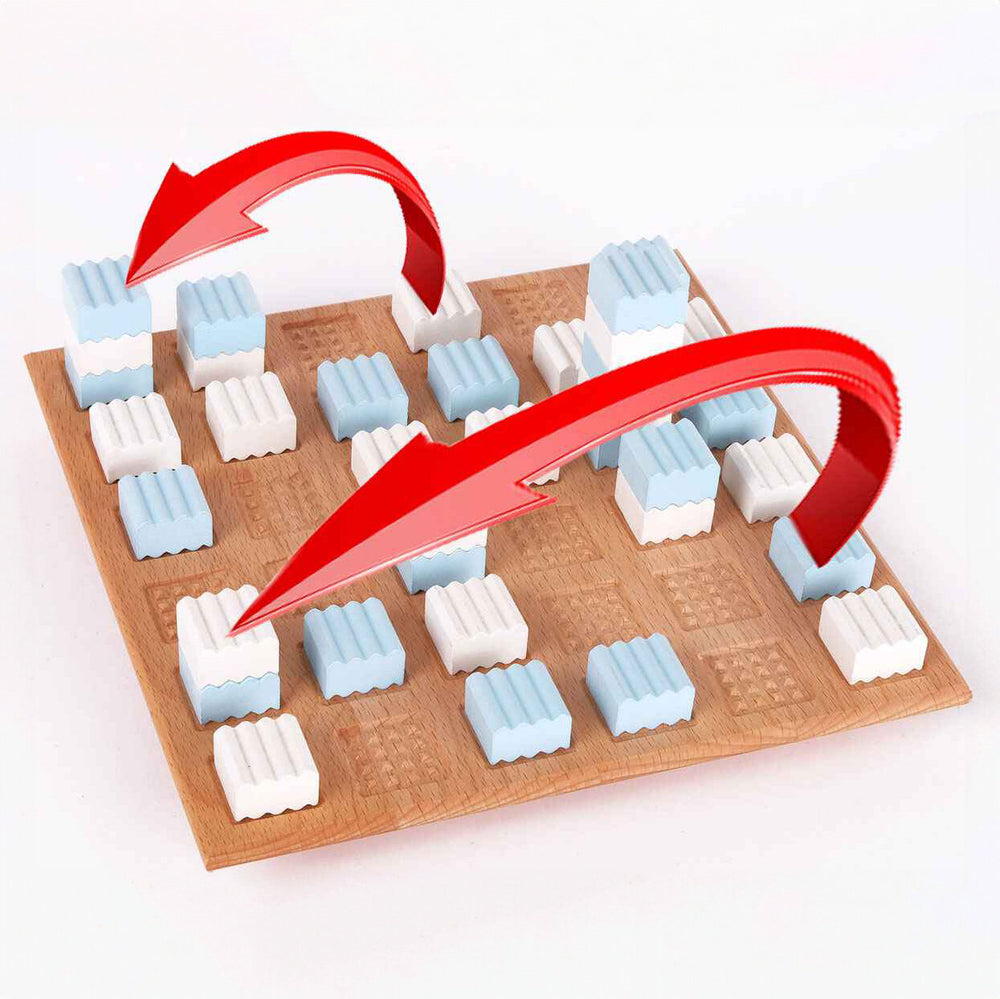 Jeder Zug verlangt strategisches Denken, denn Sie müssen immer genau zwei Spielsteine überspringen – egal, ob diese nebeneinander liegen, gestapelt sind oder sich leere Felder dazwischen befinden. Dieser knifflige Mechanismus sorgt für eine fesselnde Dynamik und immer neue Spielzüge.