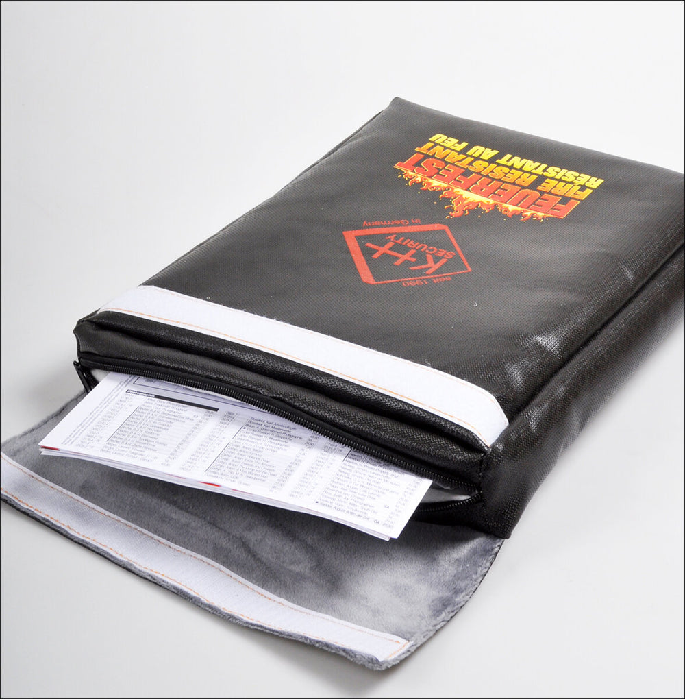 Schützen Sie Ihre wertvollsten Gegenstände mit der hitzebeständigen Dokumentenmappe XL. Diese robuste Tasche, gefertigt aus dem Material, das auch in Feuerwehrkleidung verwendet wird, bietet außergewöhnlichen Schutz vor hohen Temperaturen und mäßigen Flammen. Hergestellt aus hochmodernen Fiberglas-Fasern, hält sie Temperaturen bis zu 600°C stand und ist zudem wasserabweisend, wodurch sie ideal für den Einsatz in einem Safe geeignet ist.