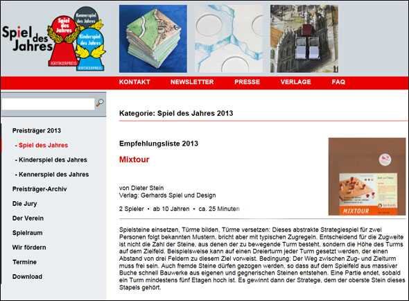 Gewinner des MinD-Spielepreises - Auswahlliste Spiel des Jahres