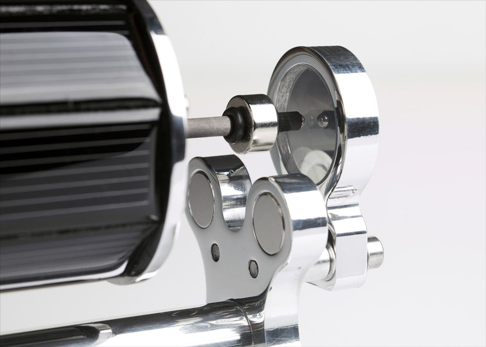 Dieser exklusive Lehr-Bausatz besteht aus den besten Materialien: hochglanzpoliertes Aluminium, ein innovativer 8-flächiger Solarrotor und ein starker Neodymmagnet im Verbindungsrohr. Mit mehr als 40 präzise gebohrten Gewindelöchern pro Motor, die vor dem Polieren gefertigt werden, zeigt sich die hohe Handwerkskunst in jedem Detail. Die Wicklungen sind geschickt im Inneren des Rotors verborgen und lassen den schwebenden Antrieb wie ein technisches Wunderwerk erscheinen.