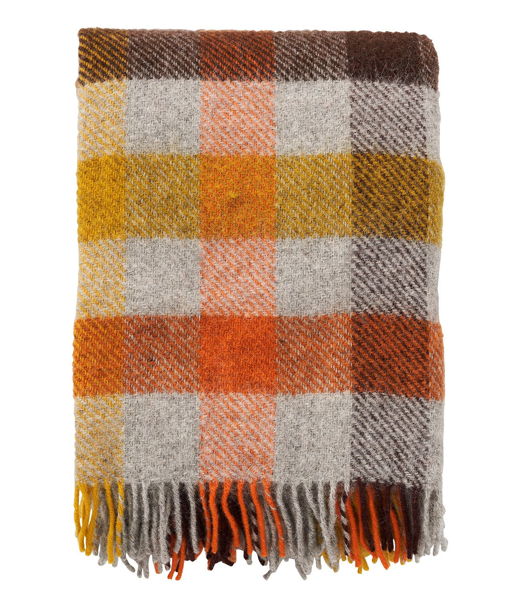 Das zeitlose Karomuster in Gelb-, Orange- und Grautönen bringt Farbe und Lebendigkeit ins Zuhause – perfekt für Sofa, Lesesessel oder als leichter Überwurf.