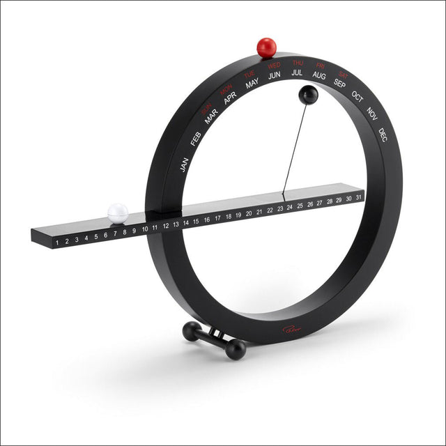 Solange niemand die moderne Zeitrechnung revolutioniert, bleibt dieser Kalender ein treuer Begleiter bis in die Ewigkeit. Sein äußerst dekoratives und ansprechendes Design zieht alle Blicke auf sich. Die schwarze Zeiger-Kugel schwebt scheinbar schwerelos im Halbkreis und lässt Sie die Zeit auf eine ganz neue Weise erleben.
