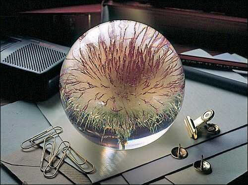 Echte Distel konserviert in glasklarer Kunstharzkugel