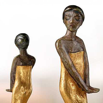 Material: Bronze teilvergoldet. Eine Skulptur. Maße: 8 x 31 x 7 cm (B/H/T). Original-Abguss.