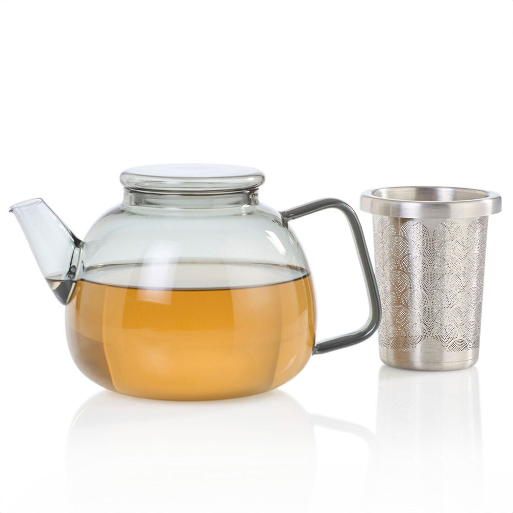 Genuss in seiner schönsten Form – mit der Teekanne „Yuna“ von AdHoc wird jede Teestunde zu einem besonderen Ritual. Das skandinavische Design mit seiner bauchigen Form strahlt Gemütlichkeit aus, während das edle rauchgraue Borosilikatglas nicht nur stilvoll, sondern auch hitzebeständig und geschmacksneutral ist.