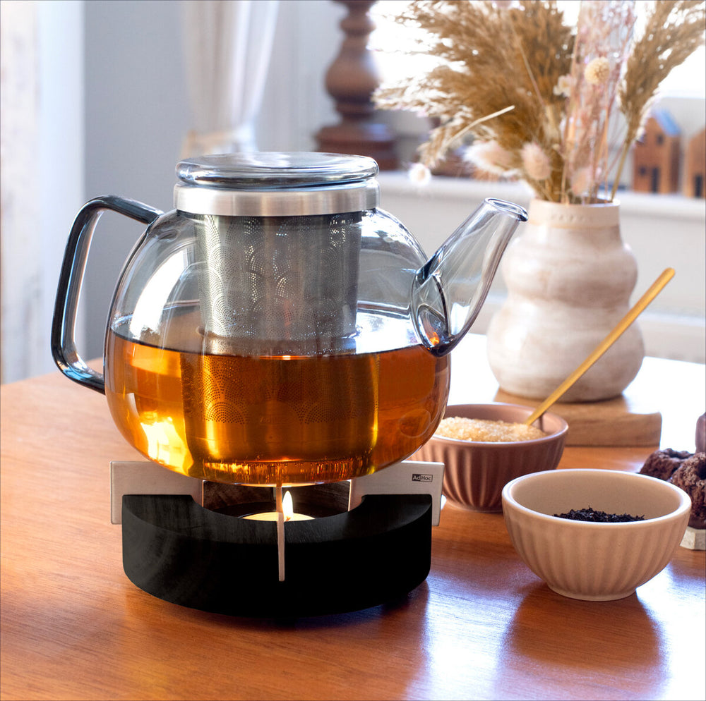 Für noch mehr Genuss gibt es das passende Stövchen „Tuto“ aus Akazienholz und Edelstahl – ideal, um deinen Tee lange warm zu halten.