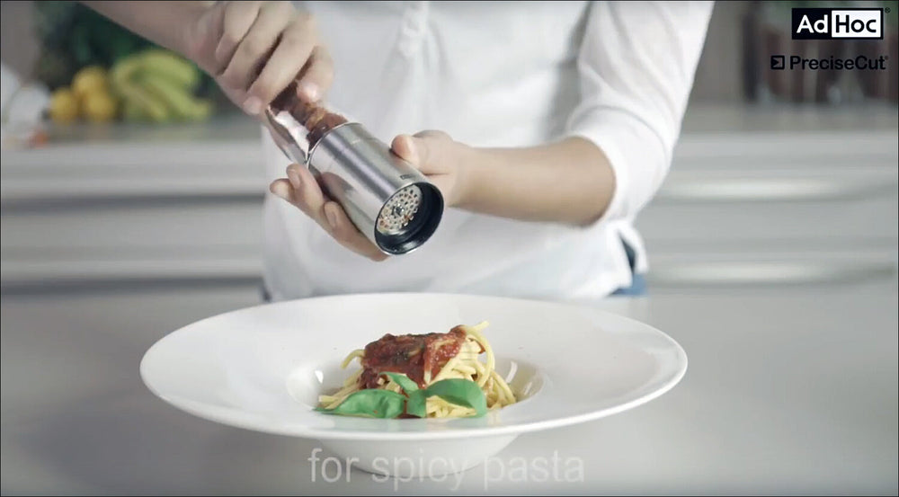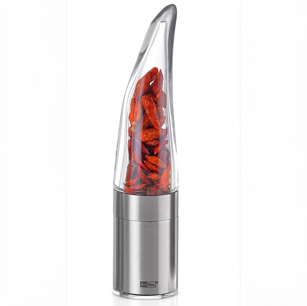 Mit PEPE bringen Sie Aroma & Schärfe perfekt dosiert in Ihre Gerichte! Das innovative SchneidWerk® von AdHoc setzt auf scharfe, geätzte Edelstahlklingen, die Chilis, Kräuter und Gewürze schneiden statt mahlen – für ein intensiveres Geschmackserlebnis durch die Freisetzung ätherischer Öle.