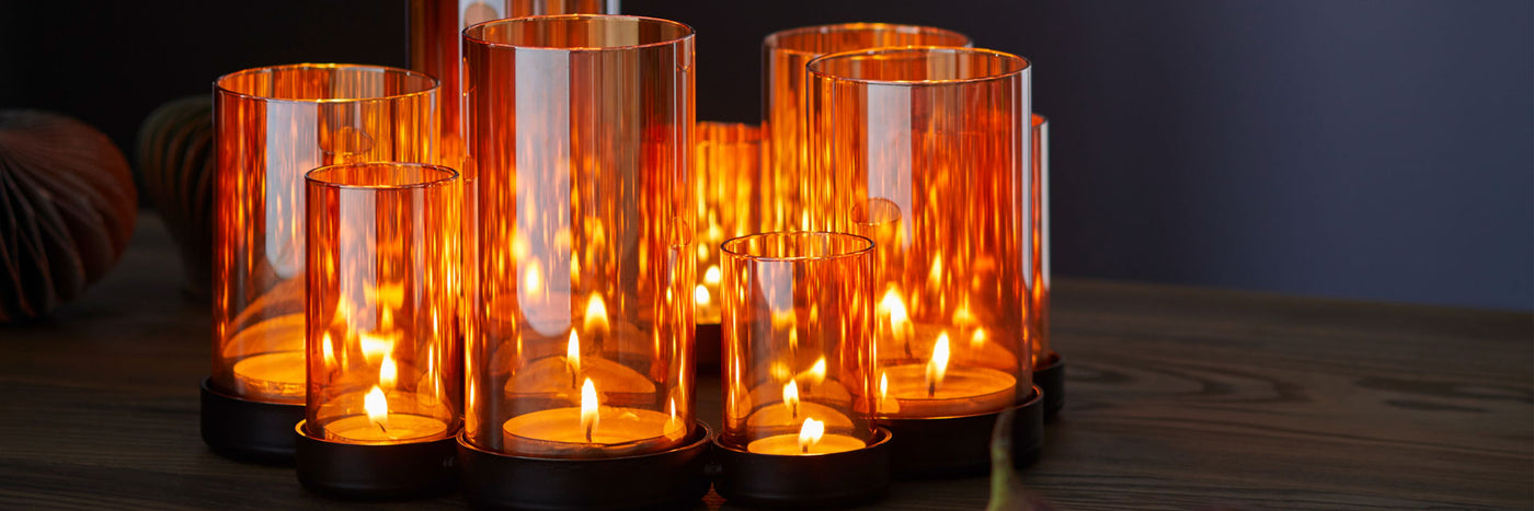 Optische Flammenvermehrung durch verspiegeltes, bernsteinfarbenes Glas