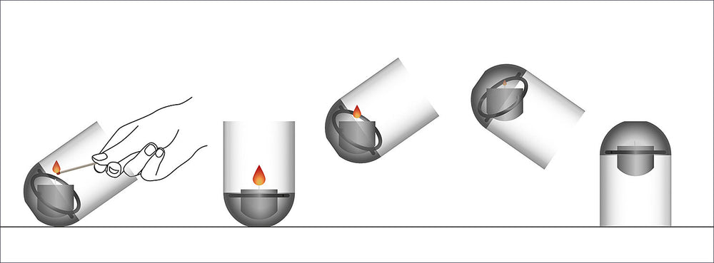 Erleben Sie die Gravity Candle – ein Windlicht, das immer in perfekter Balance bleibt. Der Clou? Das elegante Löschen der Kerze ist jetzt kinderleicht: Anstatt in den Glaszylinder zu pusten und Wachs zu spritzen, drehen Sie das Windlicht einfach um. Die Kerze verschwindet sanft unter der Kappe und wird durch Sauerstoffmangel sanft gelöscht.