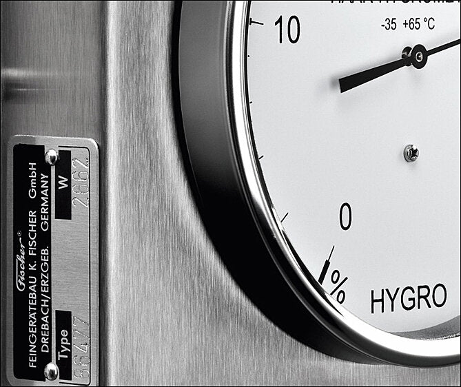 Alle Komponenten arbeiten rein mechanisch, was bedeutet, dass Sie keine Batterien oder giftigen Stoffe wie Quecksilber benötigen. Der robuste Edelstahlrahmen schützt die präzisen Messinstrumente, die durch ihr großes Display mit einem Durchmesser von 13,5 cm und einer klaren Mineralglasabdeckung einfach abzulesen sind.