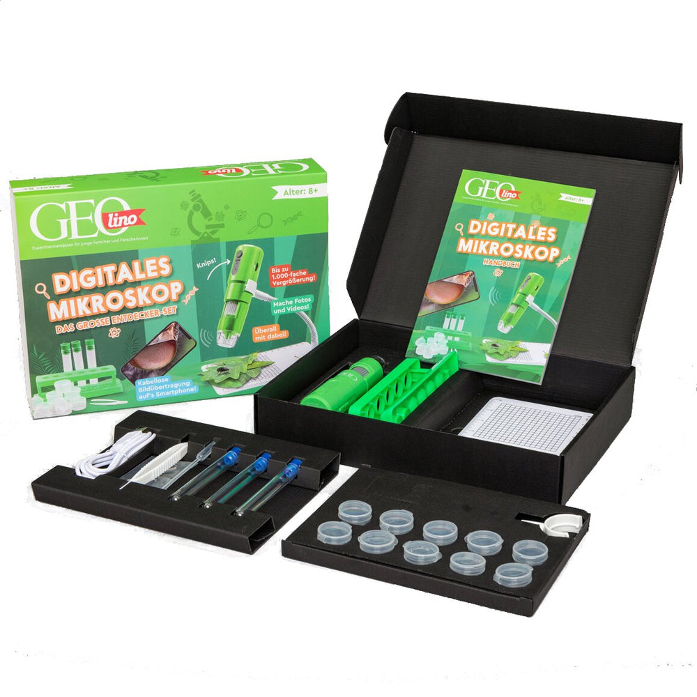 Entdecken Sie den Mikrokosmos mit dem GEOLINO Digitalmikroskop – ein ideales Werkzeug für junge Forscher ab 8 Jahren. Egal ob Bäume, Pflanzen, Insekten oder sogar Ihr eigenes Haar, dieses Mikroskop eröffnet ganz neue Perspektiven und lädt zu spannenden Entdeckungsreisen ein. Die gewonnenen Bilder und Videos können direkt auf PC, Tablet oder Smartphone betrachtet werden.