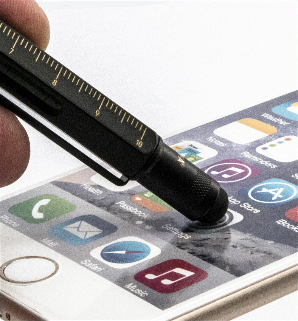 Der Multi-Pen ist der perfekte Begleiter für alle, die Wert auf Präzision und Funktionalität legen. Mit diesem cleveren Multitool haben Sie immer alles griffbereit: vorne ein Kugelschreiber für Notizen, hinten ein Smart-Pen für präzises Tippen auf Tablets, Smartphones und iPads – ganz ohne verschmierte Displays. Die ultraweiche Stylus-Kappe aus leitfähigem Gummi sorgt für eine komfortable und hygienische Bedienung Ihrer Touchscreen-Geräte, ohne die Gefahr von fettigen Fingerabdrücken.