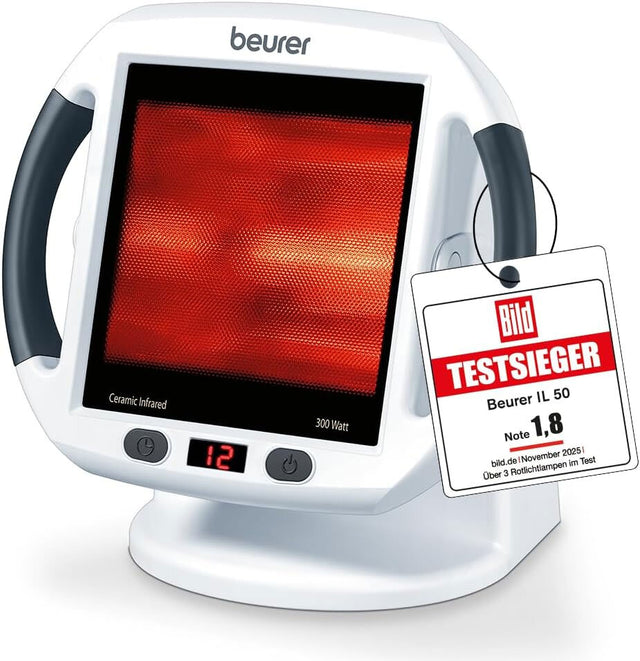 Der Beurer IL 50 Infrarot-Wärmestrahler ist Testsieger bei COMPUTER BILD und bietet 300 Watt tiefenwirksame Wärme zur Linderung von Erkältungen, Schmerzen, Muskelverspannungen oder einfach für tiefe, wohltuende Wärme an kalten Tagen.