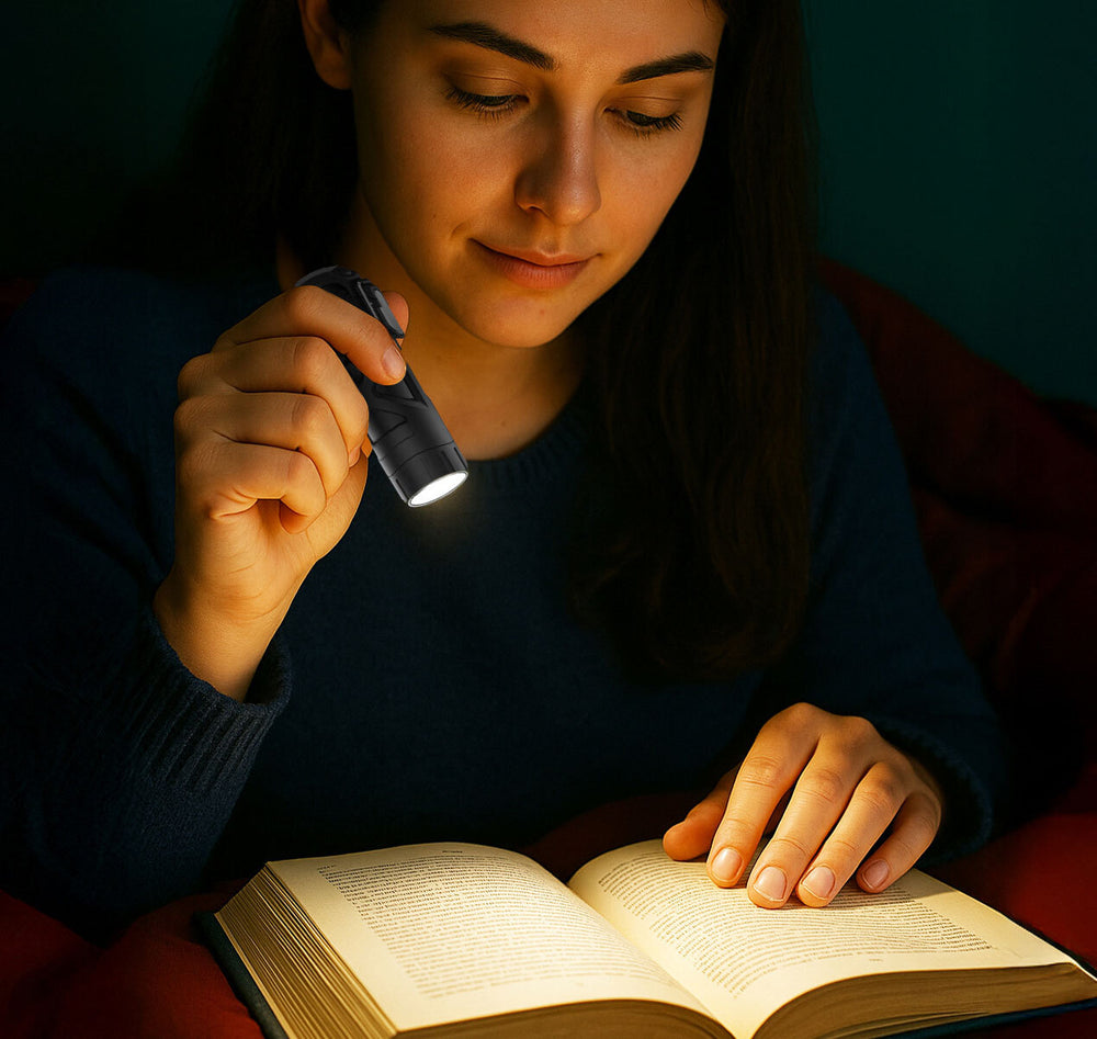 • LED-Taschenlampe mit 3 Modi: hell, dimm, SOS