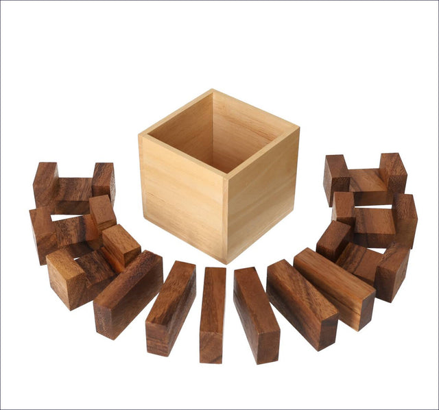 Solo-Denkspiel aus Holz, 12 Holzteile, Kantenlänge Würfel 7,5 x 7,5 cm