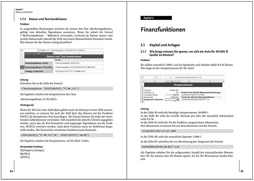 Inhalt: Datums- und Uhrzeitfunktionen. Geburtstage und Feiertage. Kapital und Anlagen. Zinsen, Kredite und Abschreibung. Informationsfunktionen. Umsatz- und Gewinnermittlung. Rangfolgen und Runden. Rechenfunktionen in der Praxis. Textfunktionen. Bedingte Formatierungen. Tabelle und Datenbanken: Zeilen und Spalten. Zellinhalte suchen und anzeigen. Zellbereiche auswerten…
