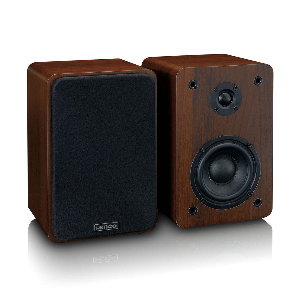 Mit integriertem Verstärker und mit zwei externen Lautsprechern und 2 x 30 Watt RMS - Walnuss.