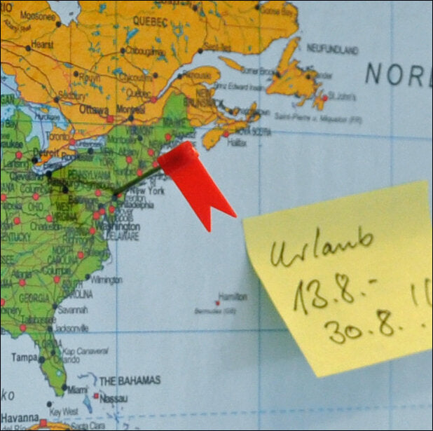 Mit bunten Flaggen-Pinns zum Markieren von Reisezielen