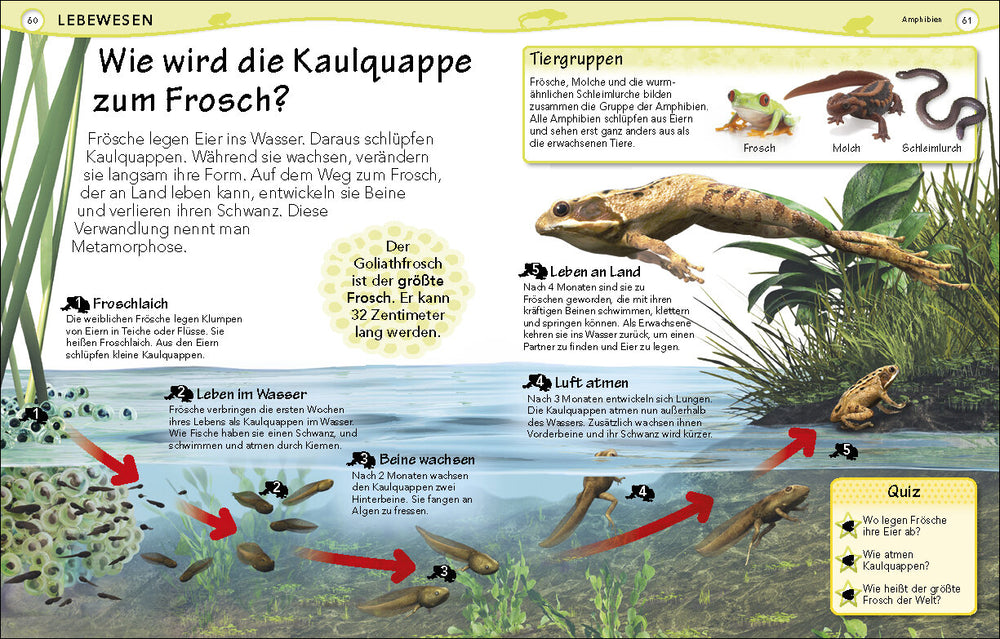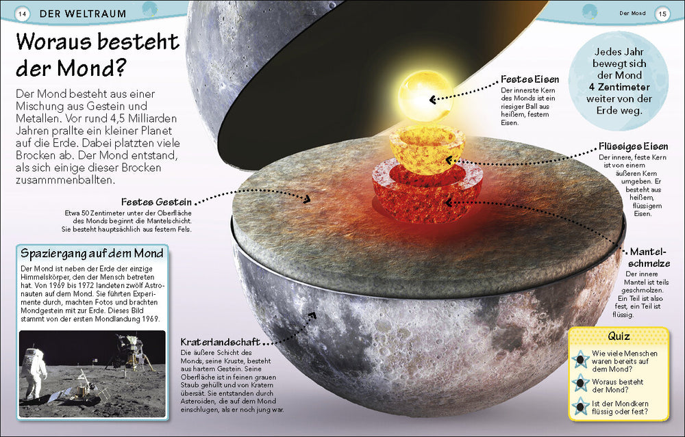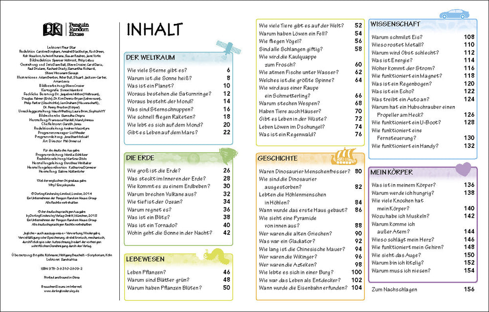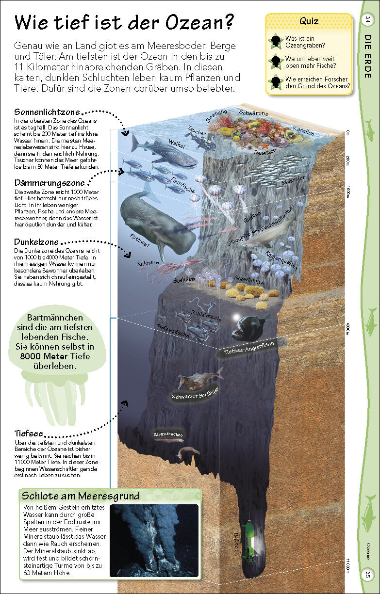 Wie funktioniert ein U-Boot? Warum regnet es? Woher kommt ein Erdbeben? Neben den Erklärungen laden Quizkästen dazu ein, das neue Wissen spielerisch zu testen.
