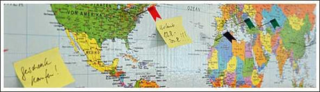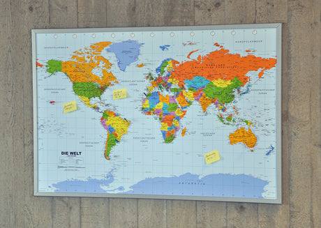 Fantastisch gestaltete Pinnwand mit Weltkarte