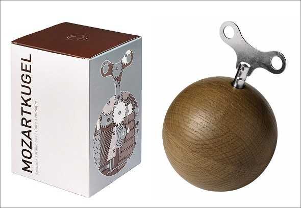 Die Spieluhr in der Holzkugel ist ein Schmeichler für Hände, Augen und Ohren. Die "Mozartkugel" verbindet edles Design mit klassischer Handwerkskunst. Gefertigt aus massiver, gewachster Eiche, liegt sie angenehm in der Hand und begeistert mit ihrer zeitlosen Kugelform. Im Inneren verbirgt sich ein fein abgestimmtes 18-stimmiges Musikwerk, das die Arie "Voi che sapete" aus Mozarts „Hochzeit des Figaro“ erklingen lässt.