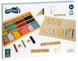 Ab 5 Jahre. Maße: 42 × 31 × 4 cm. Holz FSC® 100% zertifiziert. 460 Rechenstäbchen und Zahlenplättchen. Mit Box und Rechenboard.