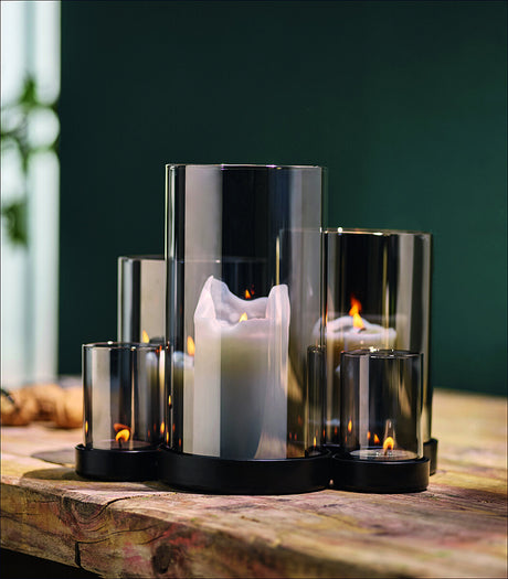 Optische Flammenvermehrung durch verspiegeltes, bernsteinfarbenes Glas