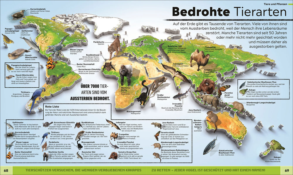 Mit 80 detailreichen Weltkarten in beeindruckender 3D-Grafik lernen Sie Orte, Fakten und Zusammenhänge kennen, die überraschen und begeistern. Ob atemberaubende Naturphänomene, bedrohte Arten oder technische Meilensteine – jede Karte lädt zum Staunen ein.