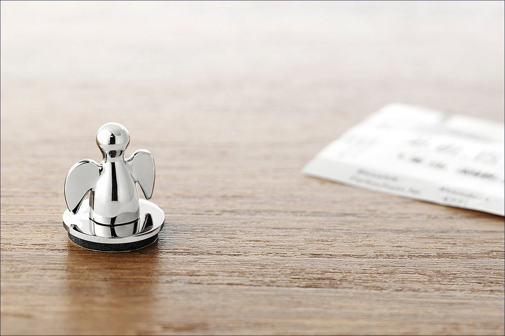 Doch ANGELO hat auch eine praktische Seite: Der kleine, magisch-magnetische Engel hält Parkscheine, Ausweise oder Notizzettel sicher zwischen sich und seinem magnetischen Sockel sichtbar fest. So haben Sie wichtige Dokumente immer griffbereit und gut sichtbar auf dem Armaturenbrett.