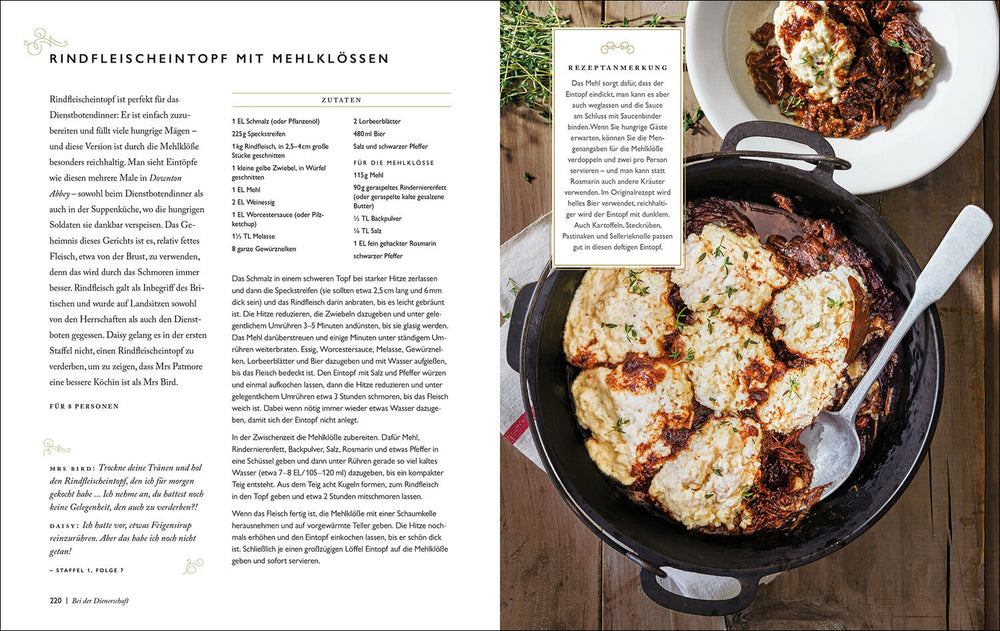 Das offizielle Kochbuch zur Kultserie entführt Sie mit 125 authentischen Rezepten in die prachtvolle Welt der britischen Aristokratie – von feinen Madeleines und Scones für den Afternoon Tea bis zu köstlichen Hauptgerichten wie Ente mit Apfel-Calvados-Sauce oder herzhaften Klassikern wie Lammeintopf und Porter Cake aus dem Speisesaal der Bediensteten.