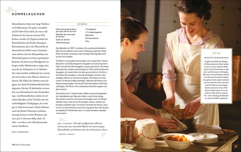 Ergänzt wird das Buch durch exklusive Hintergrundinformationen, faszinierende Fakten zur Serie, zahlreiche Set-Fotos und Beiträge der renommierten Food-Historikerin Annie Gray. Ob Sie ein festliches Dinner wie Lord Grantham planen oder einfach das Besondere suchen: Dieses Kochbuch ist ein Muss für jeden Downton-Abbey-Fan und bringt britische Genusskultur und Serienfeeling in Ihre Küche!
