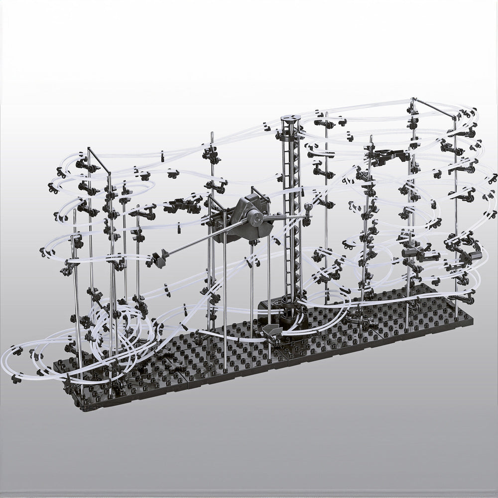 Wer denkt, dass Kugelbahnen nur etwas für Kinder sind, der wird hier eines Besseren belehrt. Bauen Sie Ihre eigene spektakuläre, der Schwerkraft trotzende Kugel-Achterbahn! Das ausgeklügelte System besteht aus einer Bodenplatte, auf der Sie aus Metallelementen und flexiblen Kuststoffschienen Schritt für Schritt eine richtige Achterbahn aufbauen. Das ist gar nicht so einfach – ungefähr 8 Stunden Konstruktionszeit sollten Sie schon einplanen.