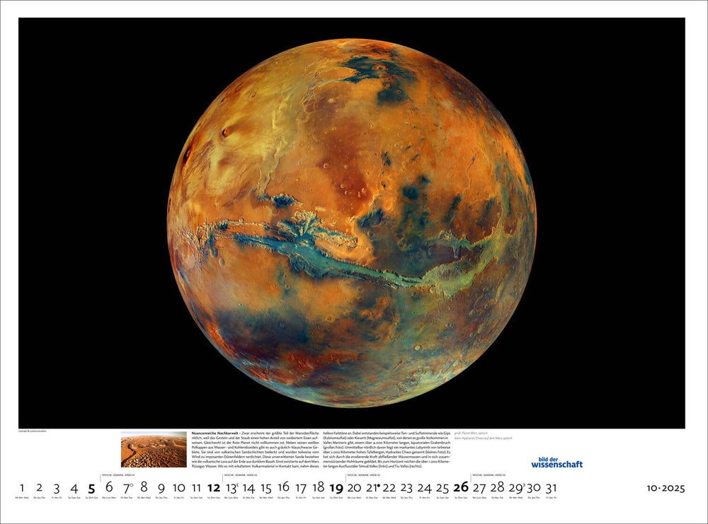 Damit Sie verstehen, was Sie sehen, liefert Astronomie-Experte Rüdiger Vaas spannende Erklärungen zu jedem Bild – fundiert, verständlich und faszinierend zugleich. Ob kosmische Strahlung im Zentrum der Milchstraße oder überraschende Farbspiele auf dem Mars – dieser Kalender verbindet Wissen und Ästhetik in einzigartiger Weise.