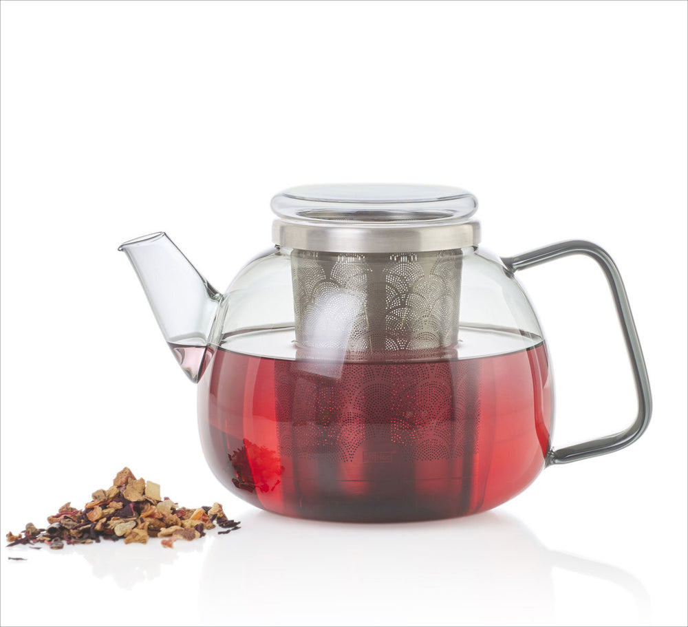 Genuss in seiner schönsten Form – mit der Teekanne „Yuna“ von AdHoc wird jede Teestunde zu einem besonderen Ritual. Das skandinavische Design mit seiner bauchigen Form strahlt Gemütlichkeit aus, während das edle rauchgraue Borosilikatglas nicht nur stilvoll, sondern auch hitzebeständig und geschmacksneutral ist.