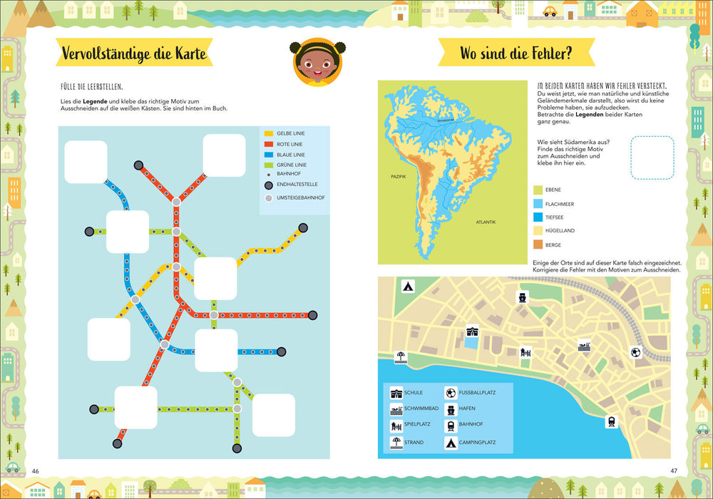 Ob der kleine Leser spielerisch lernt U-Bahn-Netzpläne richtig zu lesen, sich schnell auf Stadtplänen zurecht zu finden, Ökozonen und verschiedene Landschaften kennenlernt oder in die faszinierend bunte Welt der Flaggen und Länder eintaucht!